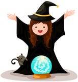 Vektorhandgezogene Illustration Der Hexe Mit Glaskugel Vektor Abbildung - Illustration von illustration, glaskugel: 134092216